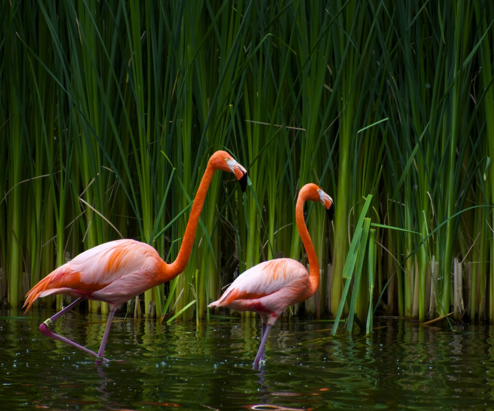 «Красивые розовые фламинго на озере»