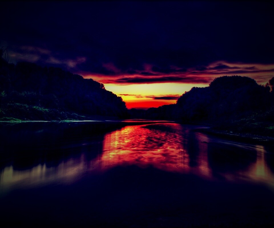 «Багровый закат и водная гладь»
