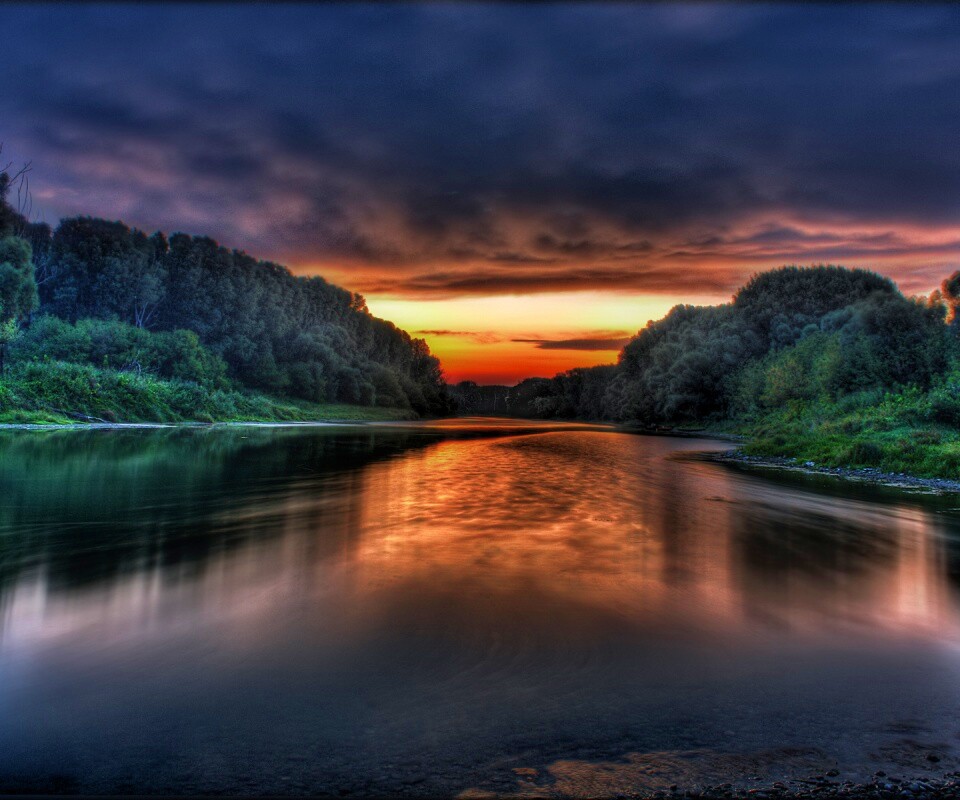 «Багровый закат и водная гладь»