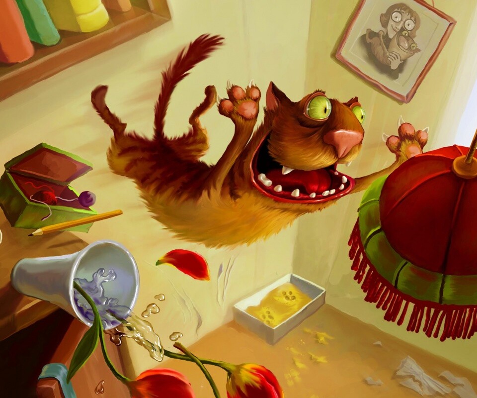 Обои для рабочего стола «Бешенный кот» 960х800 с фильтром vibrance (оригинал 1600х1200)