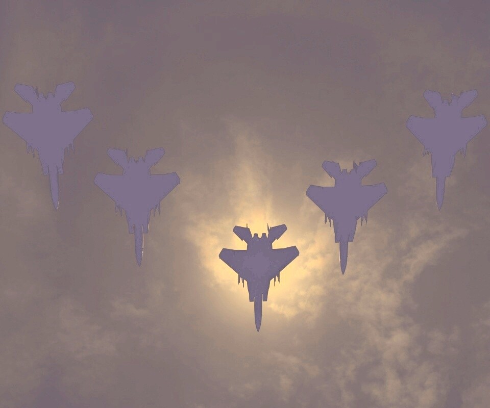 «Ряд истрибителей на фоне солнца»