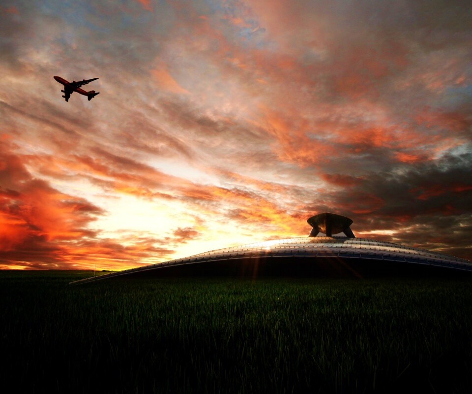 «Самолет в закатном небе»
