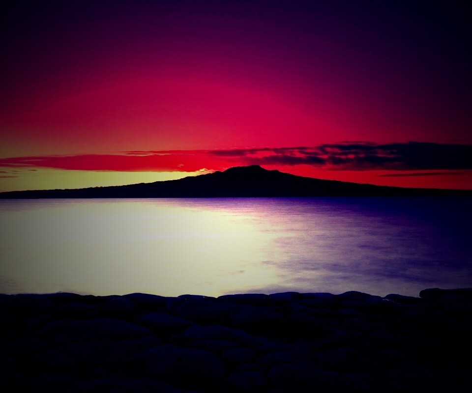 Обои для рабочего стола «Закат за островом Рангитото» 960х800 с фильтром lomo (оригинал 1920х1200)