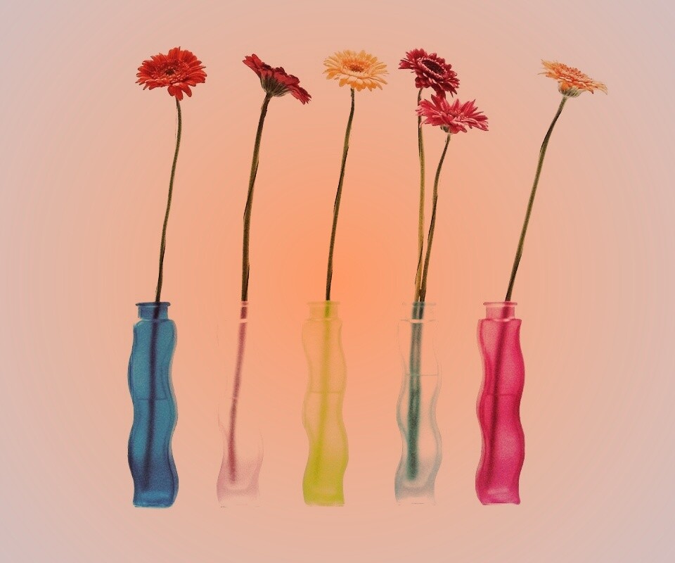 «Герберы в изогнутых вазах»