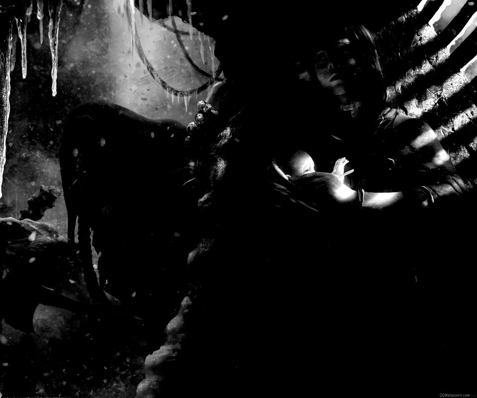 «Девушка с ребенком прячется от монстра»