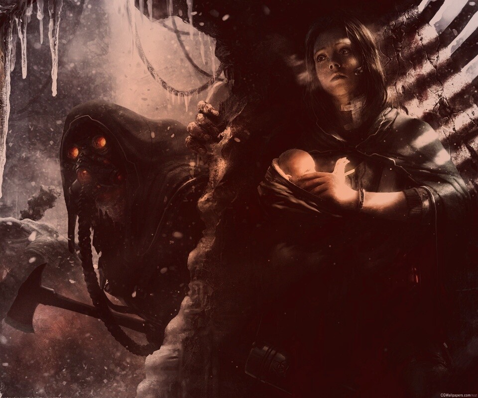 «Девушка с ребенком прячется от монстра»