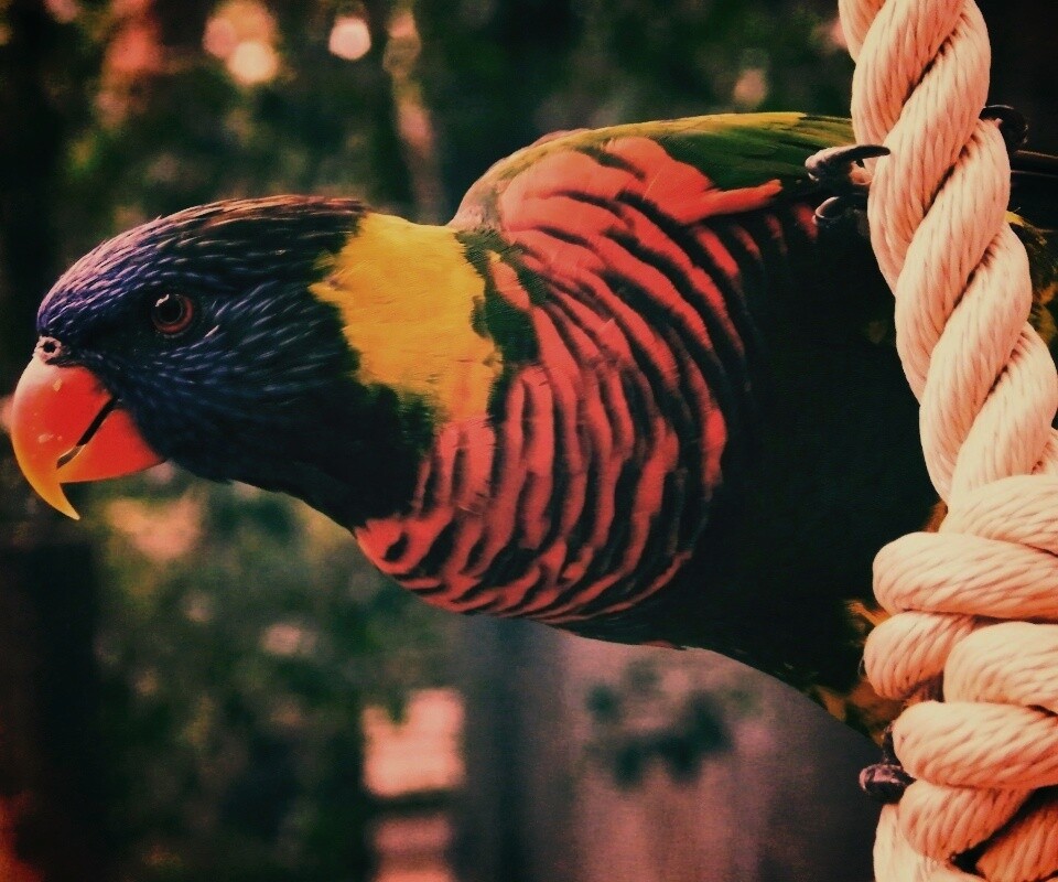 Обои для рабочего стола «Попугай на канате» 960х800 с фильтром earlybird (оригинал 2560х1600)