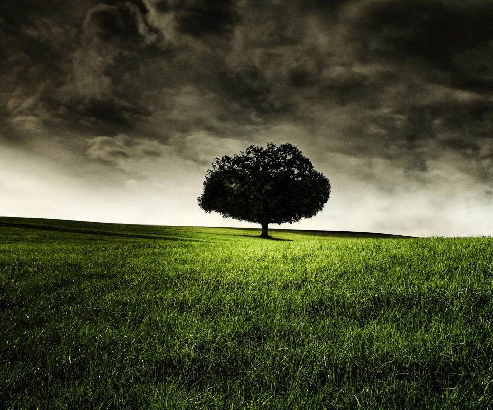 Обои для рабочего стола «Одинокое дерево под грозовым небом» 960х800 (оригинал 2560х1600)