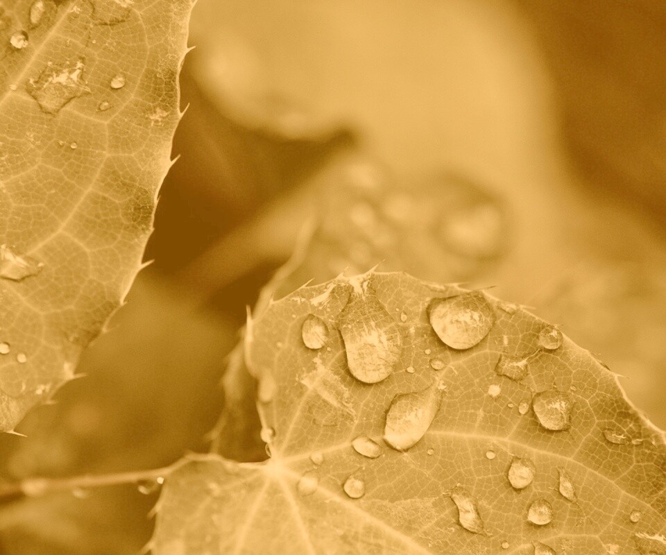 Обои для рабочего стола «Капельки росы на листьях» 960х800 с фильтром kelvin (оригинал 1920х1200)