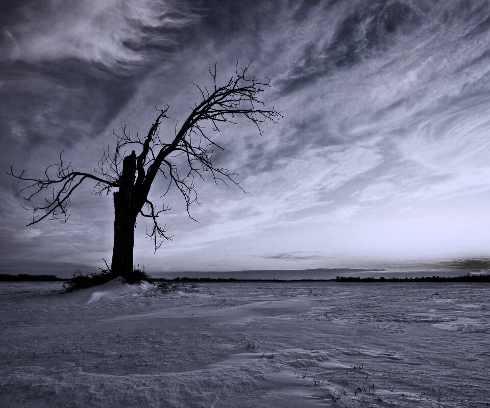 «Сломанное дерево в снежной тундре»