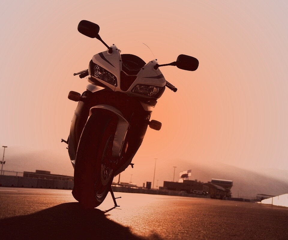 «Мотоцикл на фоне заходящего солнца»