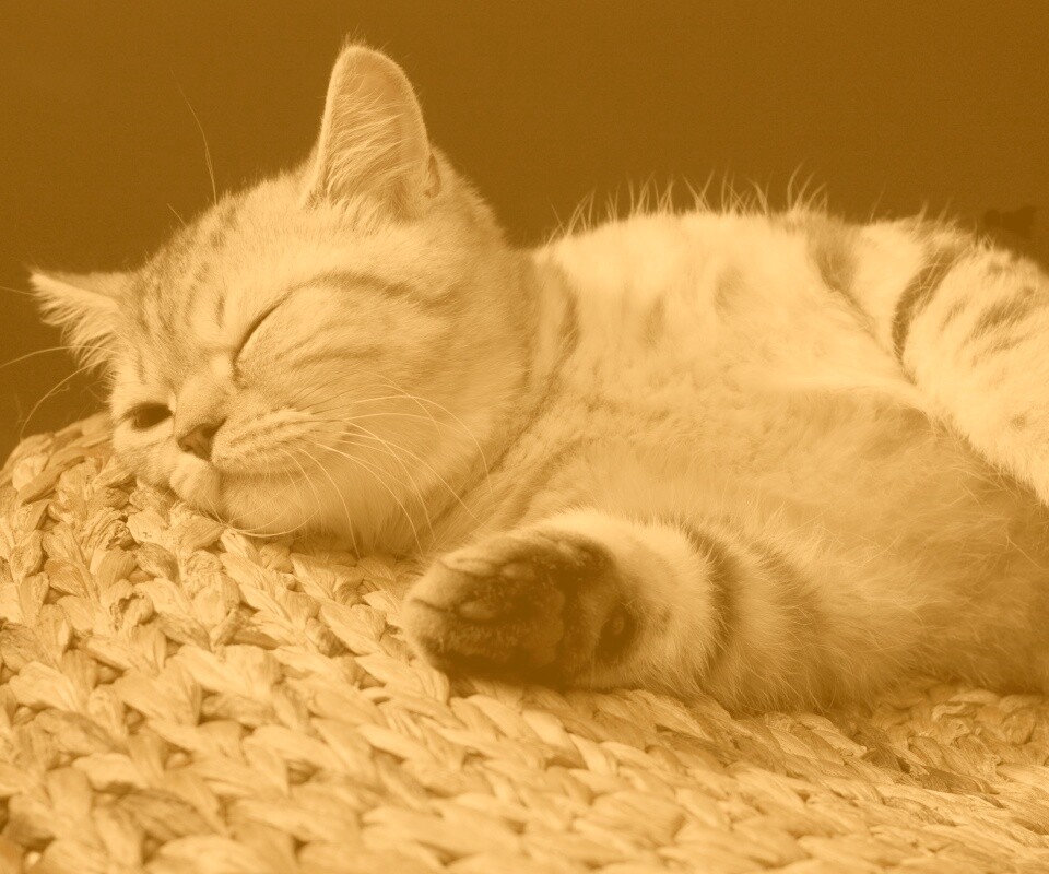 «Пушистый кот спит на корзине»