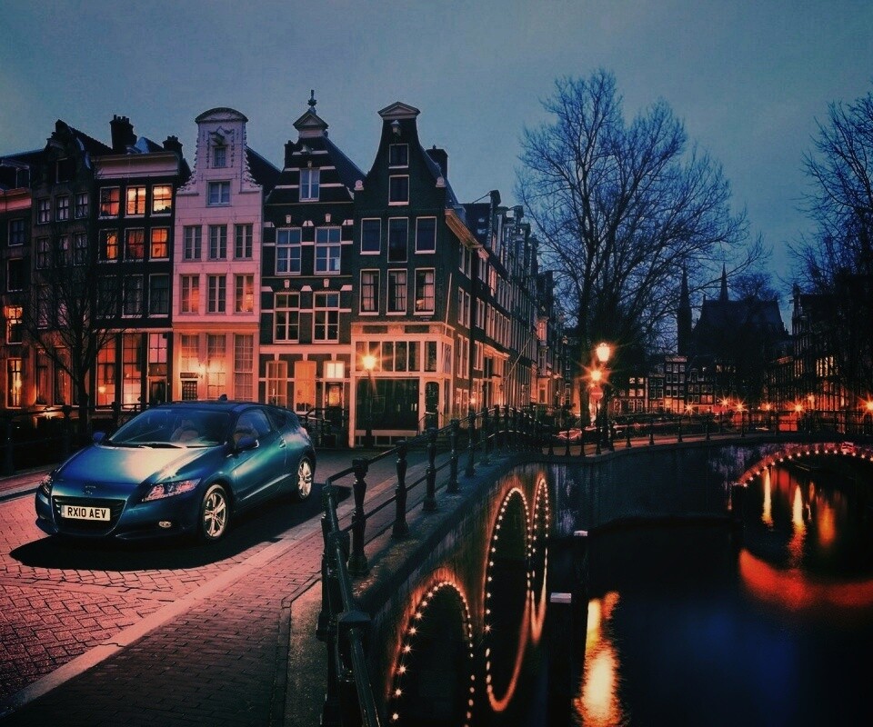 «Автомобиль на мосту в свете фонаря»