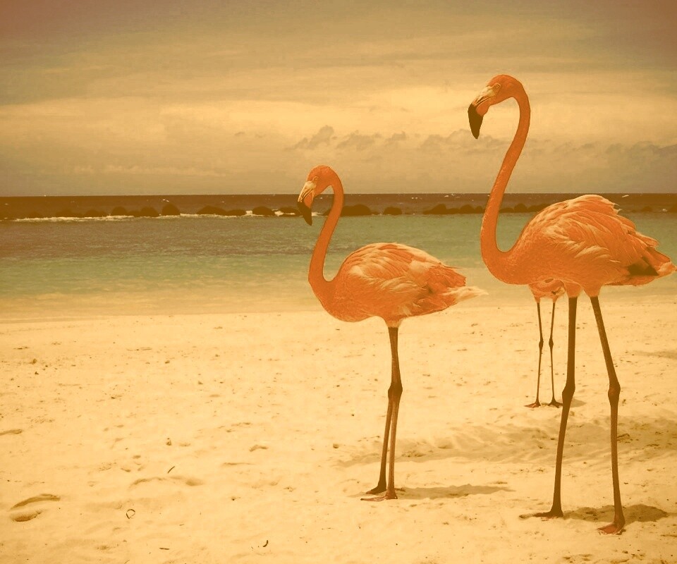 «Розовые фламинго на пляже»