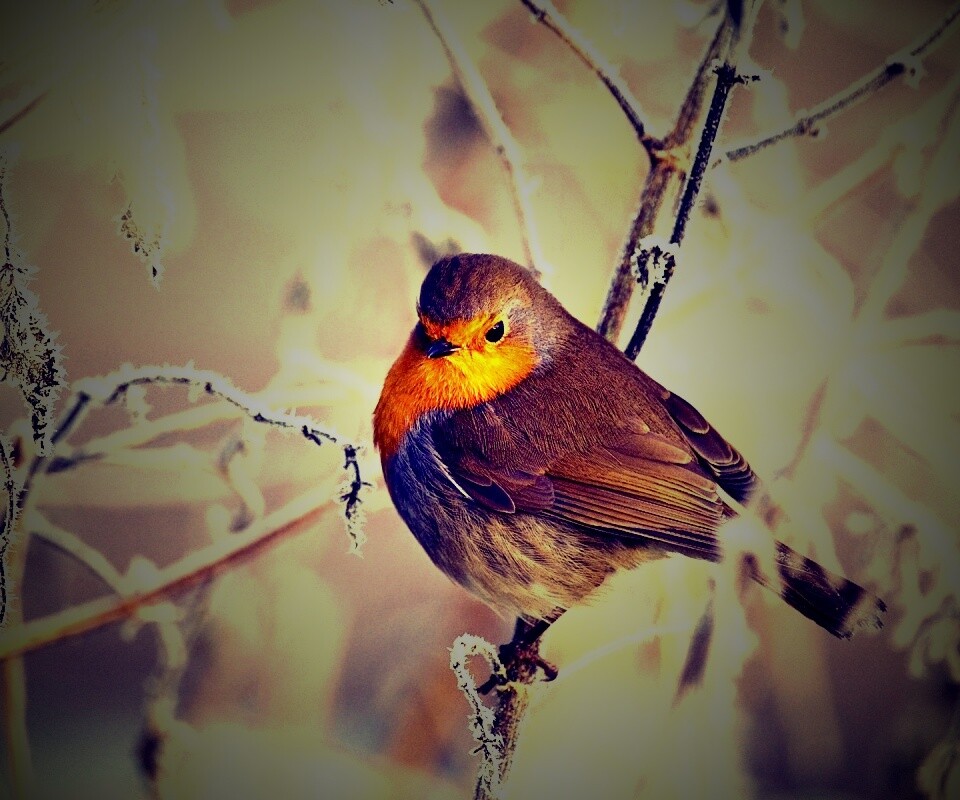 Обои для рабочего стола «Птичка на ветке» 960х800 с фильтром lomo (оригинал 1920х1200)