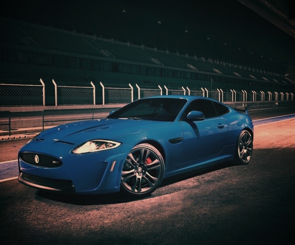 «Синий спорткар на гоночном треке»