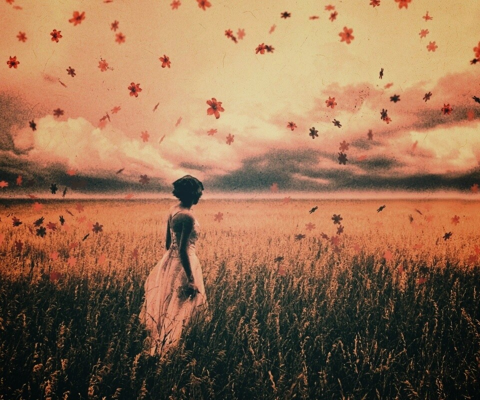 «Грустная девушка в поле травы»