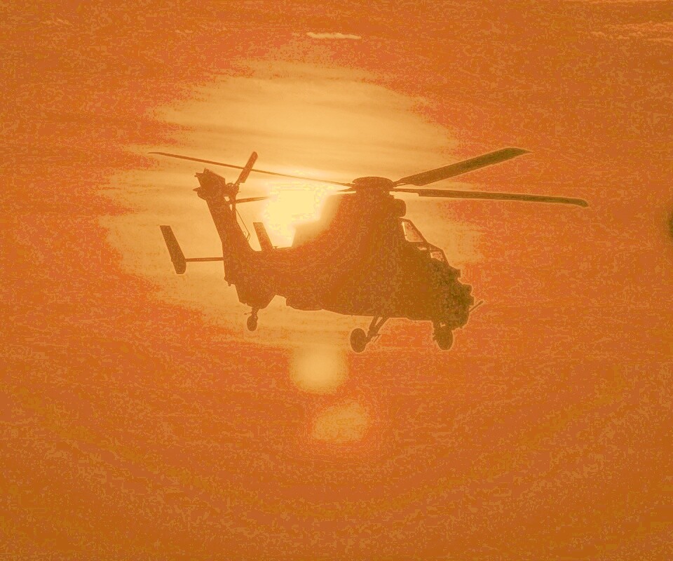 «Вертолет в лучах закатного солнца»