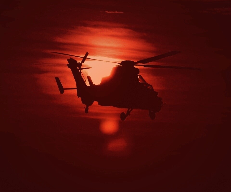 «Вертолет в лучах закатного солнца»