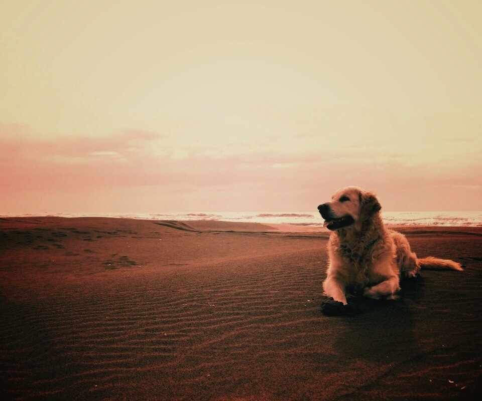 «Красивая собака на оранжевом песке»