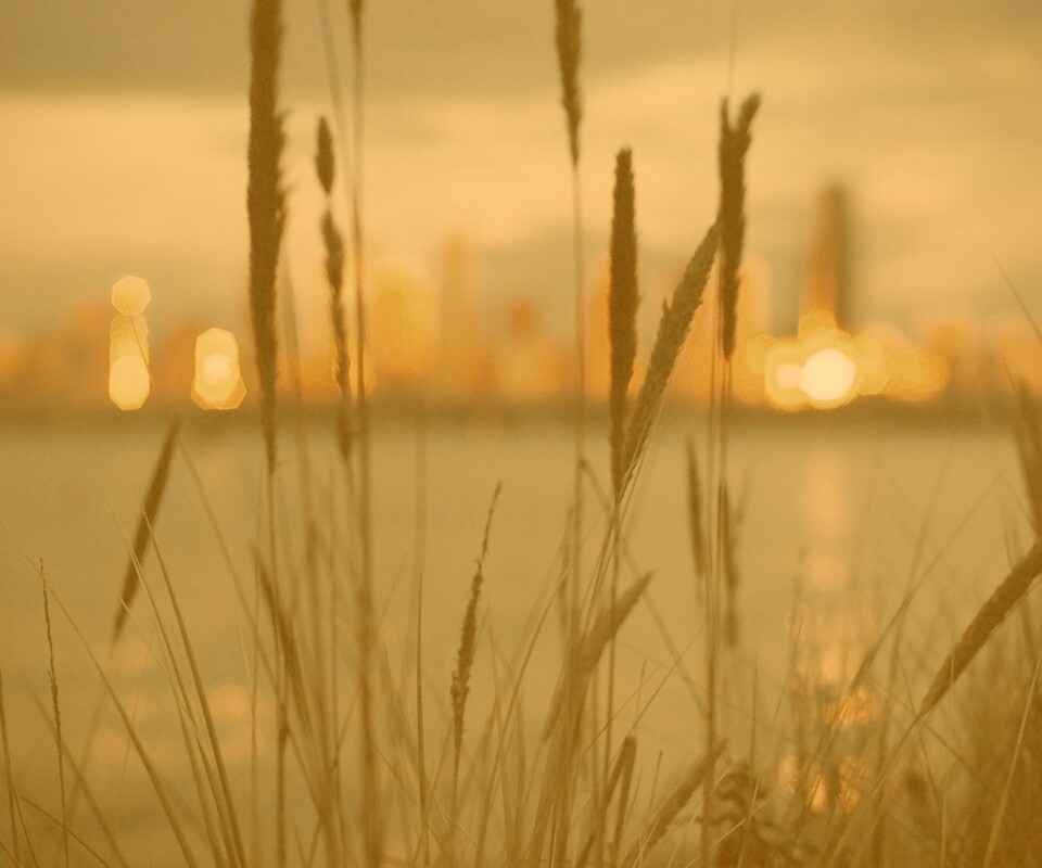 Обои для рабочего стола «Камыш на фоне вечерних огней» 960х800 с фильтром kelvin (оригинал 2560х1600)
