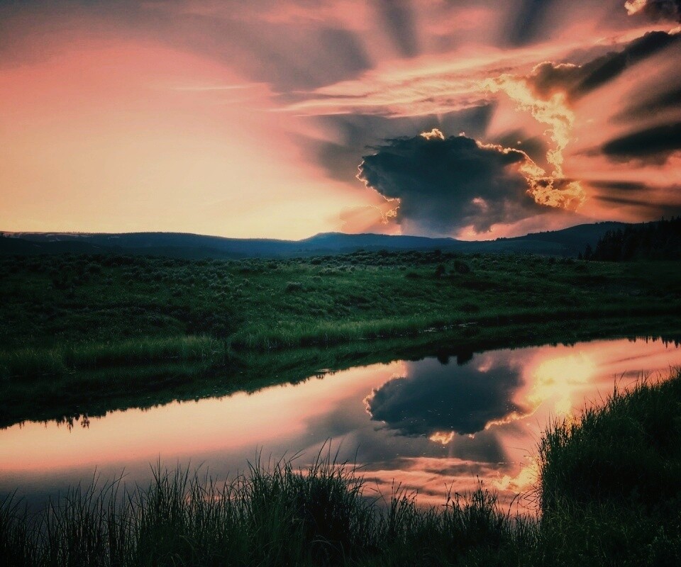Обои для рабочего стола «Облако над лугом» 960х800 с фильтром earlybird (оригинал 1920х1200)