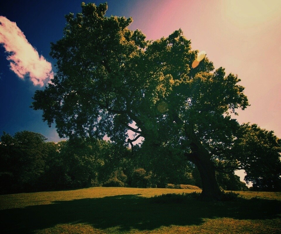 «Большое зеленое дерево на лужайке»