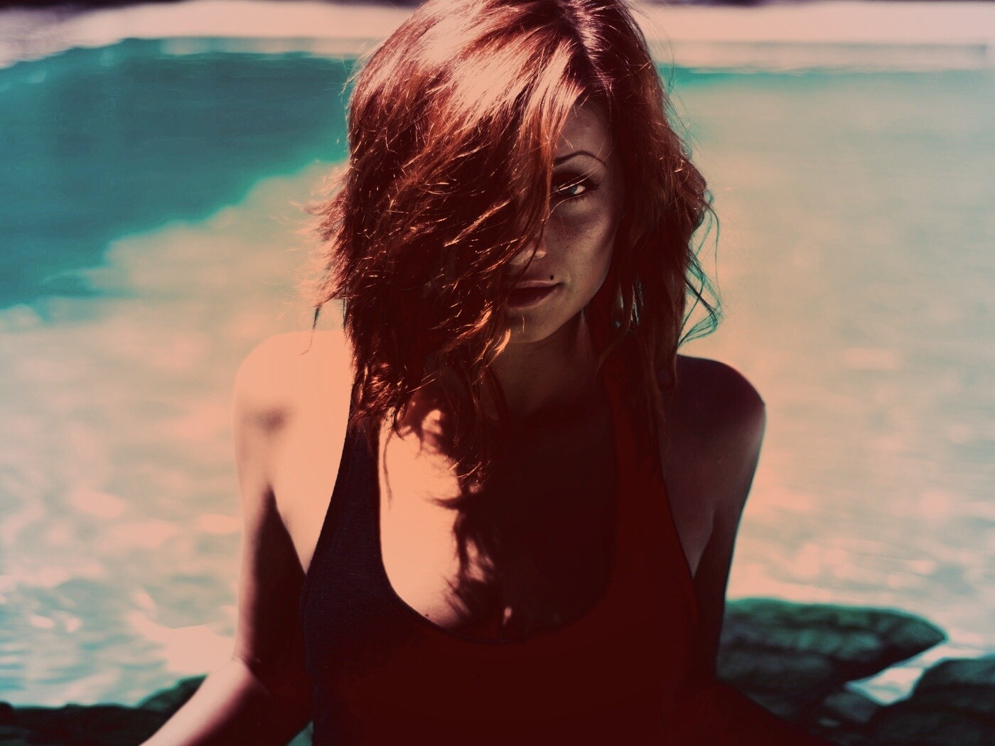 Обои для рабочего стола «Девушка рядом с бассейном» 1400х1050 с фильтром toaster (оригинал 2560х1600)