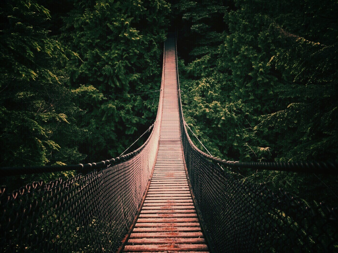 Обои для рабочего стола «Канатный мостик» 1400х1050 с фильтром earlybird (оригинал 2560х1024)