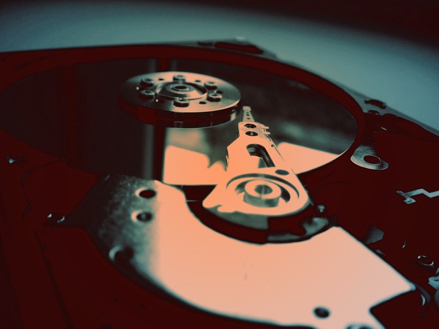 Обои для рабочего стола «Разобранный жесткий диск» 1400х1050 с фильтром toaster (оригинал 1600х1200)