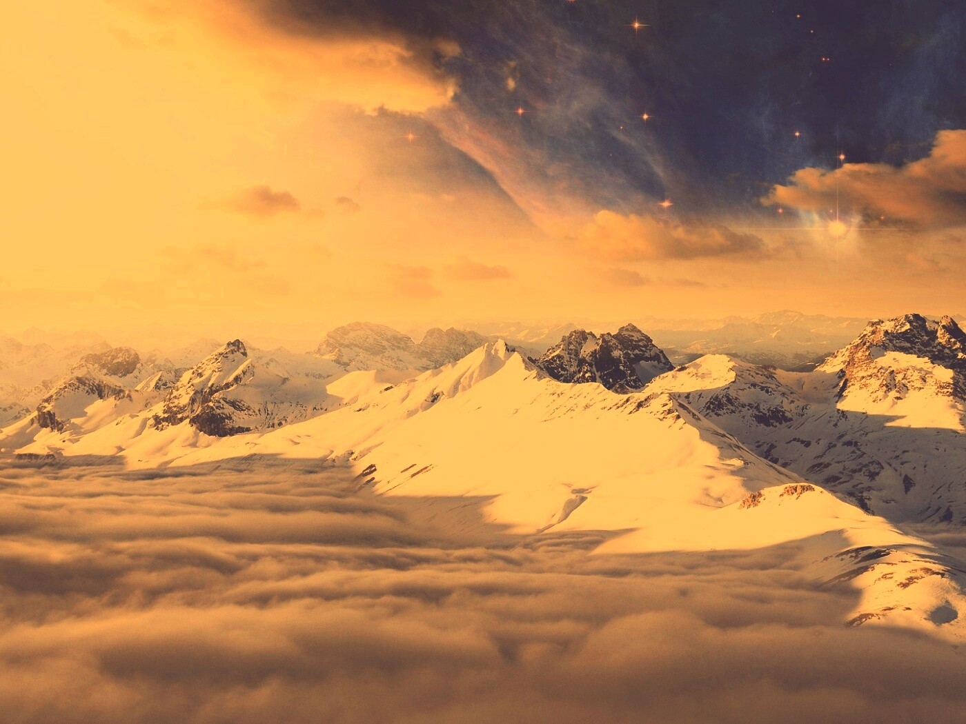 «Горный хребет над облаками»
