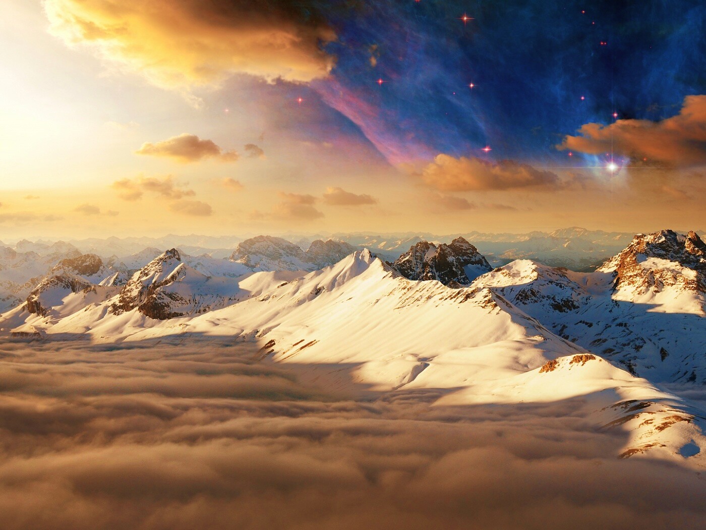 «Горный хребет над облаками»