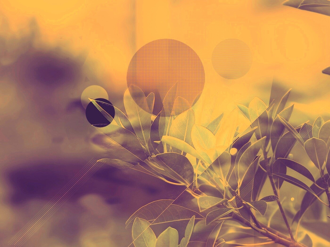 «Синий фильтр с кргуами на фото листьев»