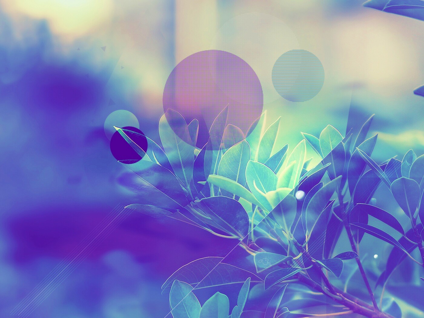 «Синий фильтр с кргуами на фото листьев»