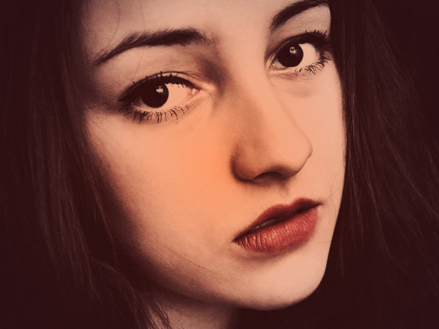«Брюнетка с ярким макияжем и печальным лицом»