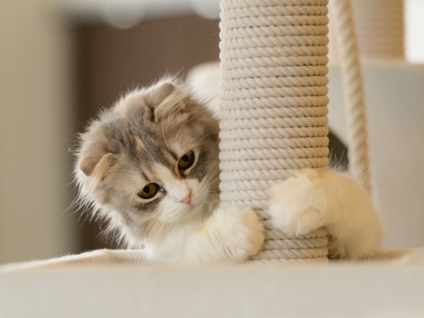 «Пушистая кошка с когтеточкой»