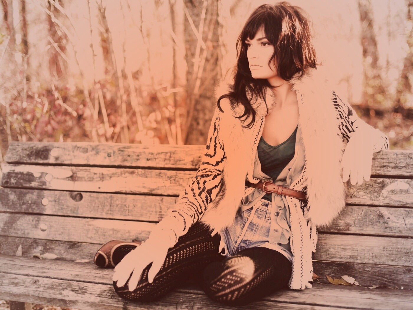 «Красивая девушка сидит на скамейке»