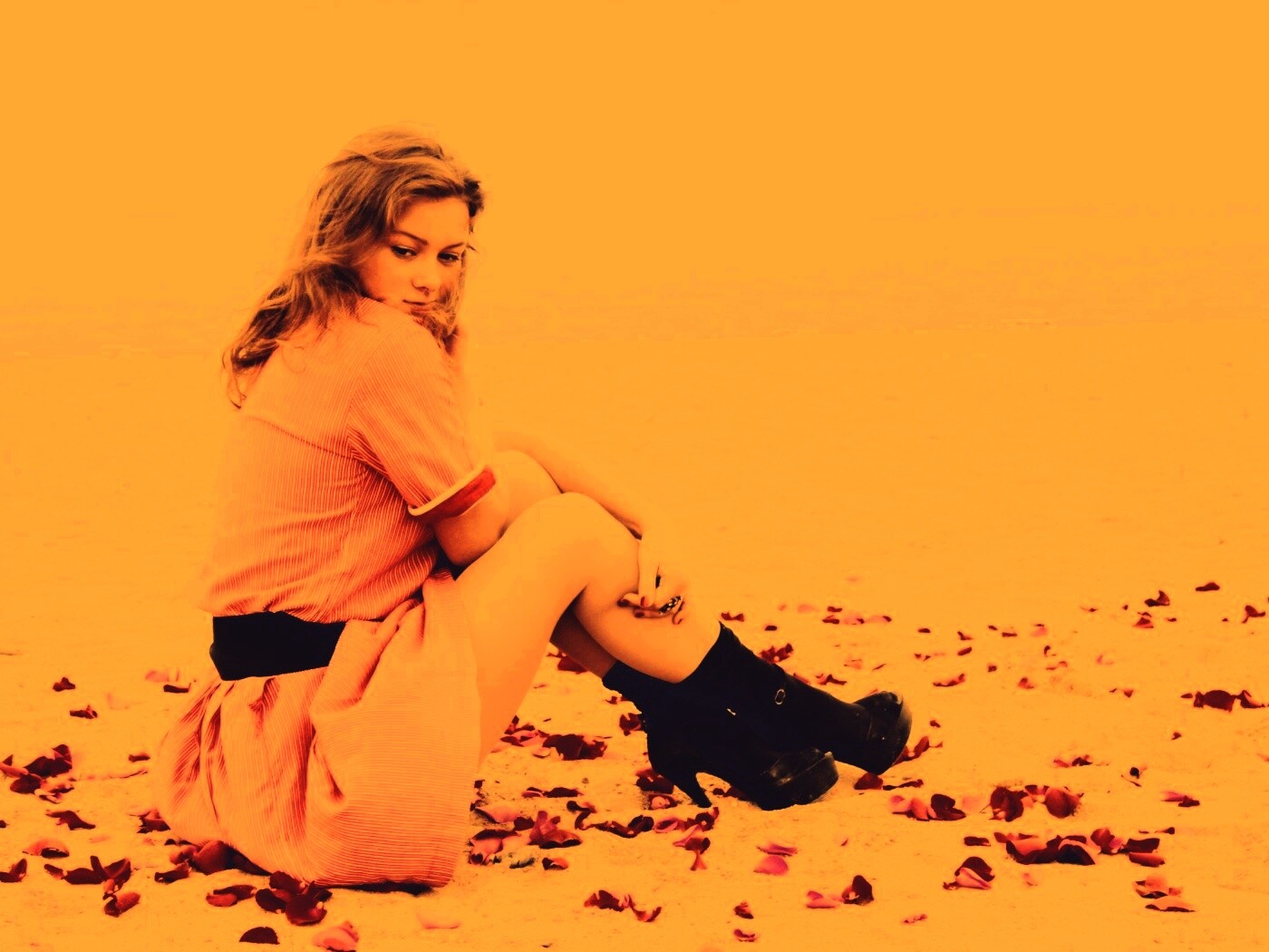 «Девушка среди лепестков на пляже»