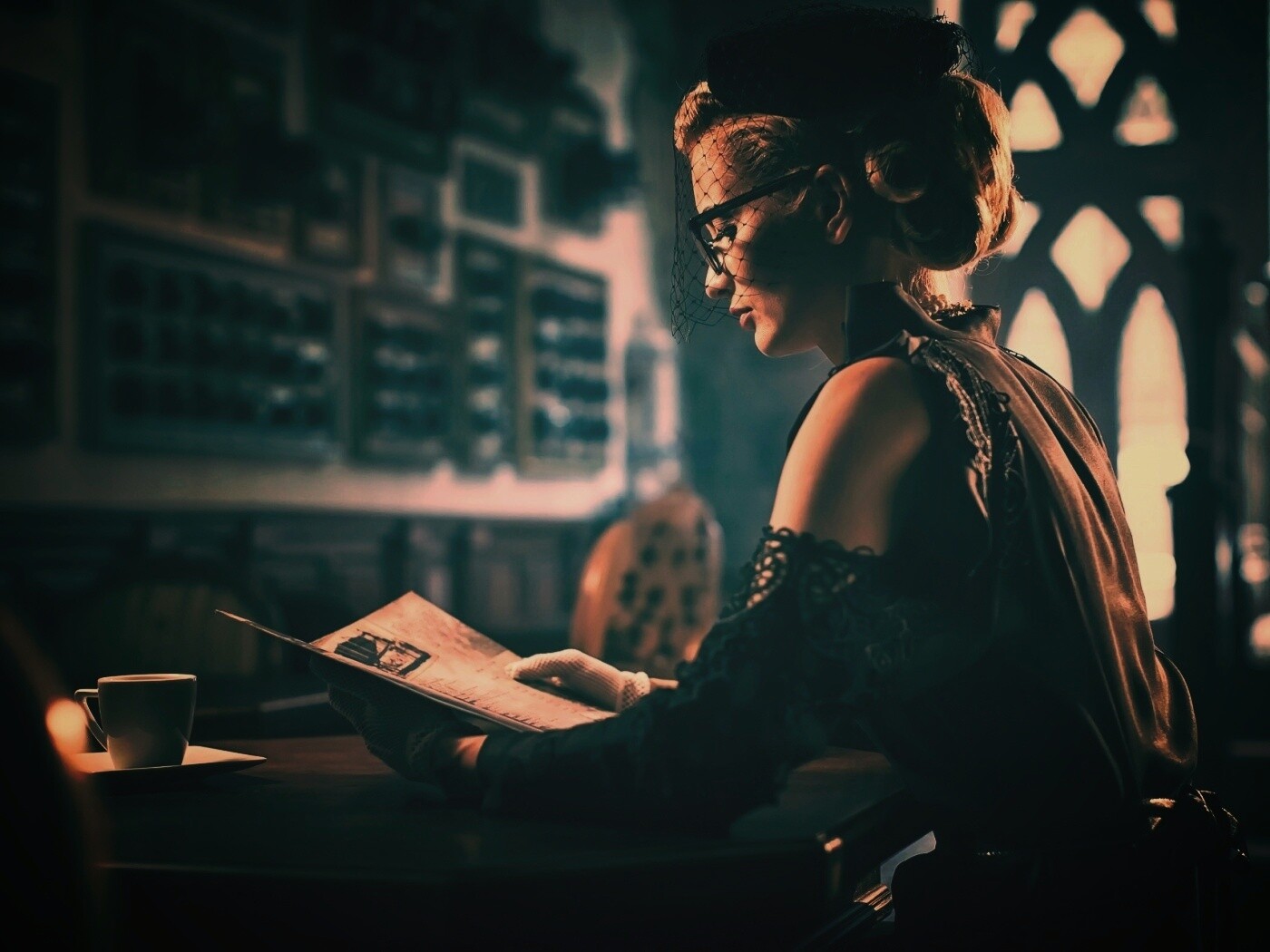 «Витажная девушка в кафе»