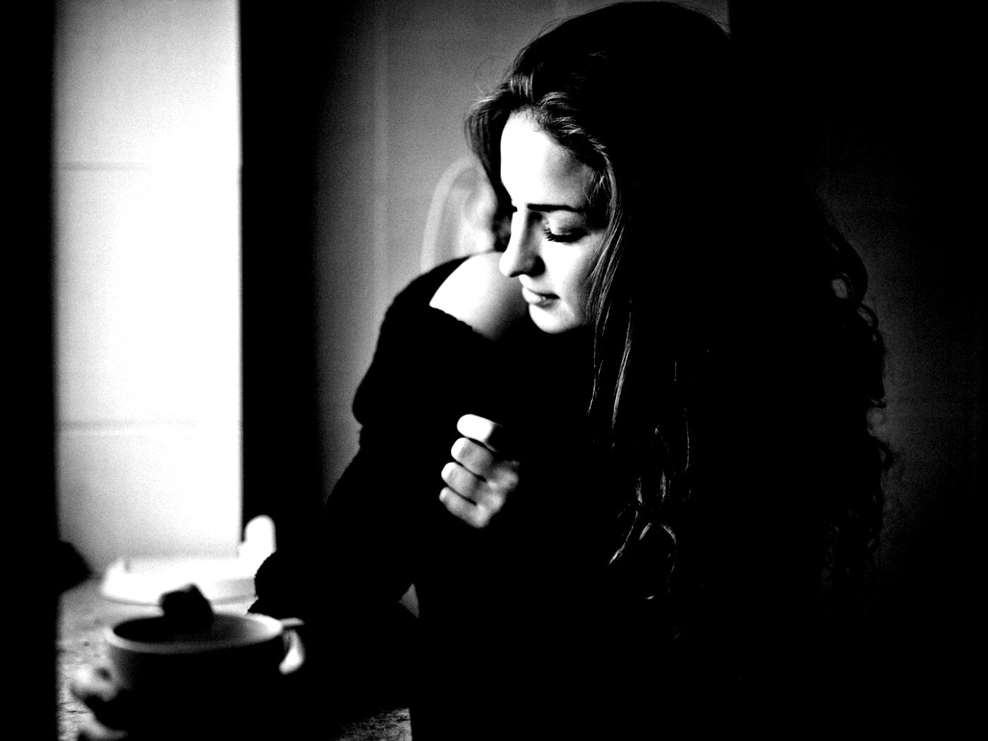 «Обнаженное плечо и чашка кофе»