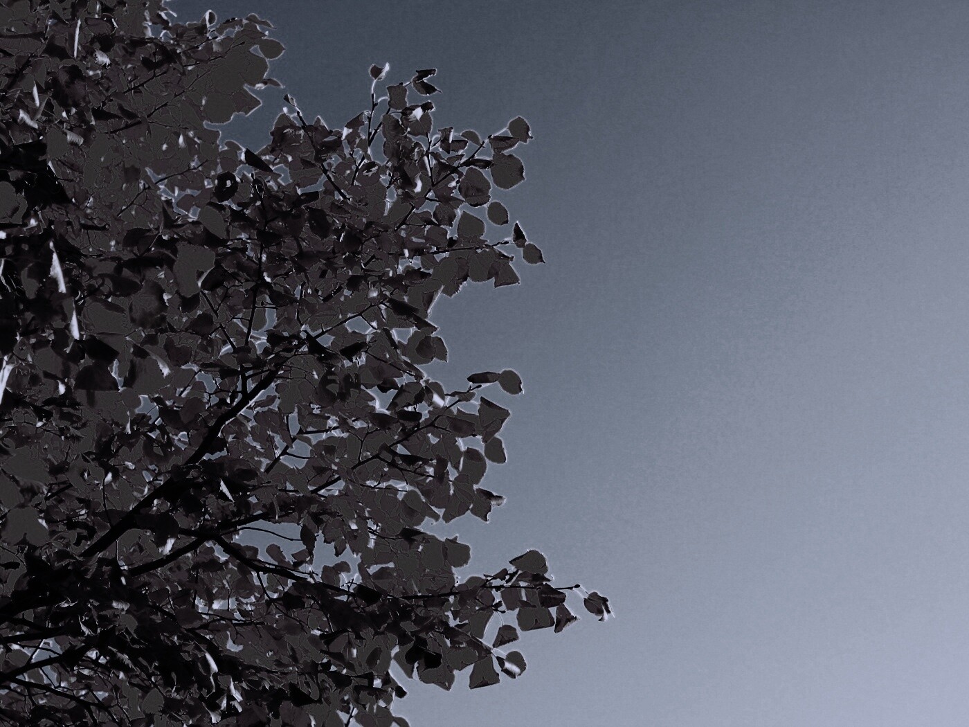 «Ветви с пожелтевшими листьями на фоне неба»