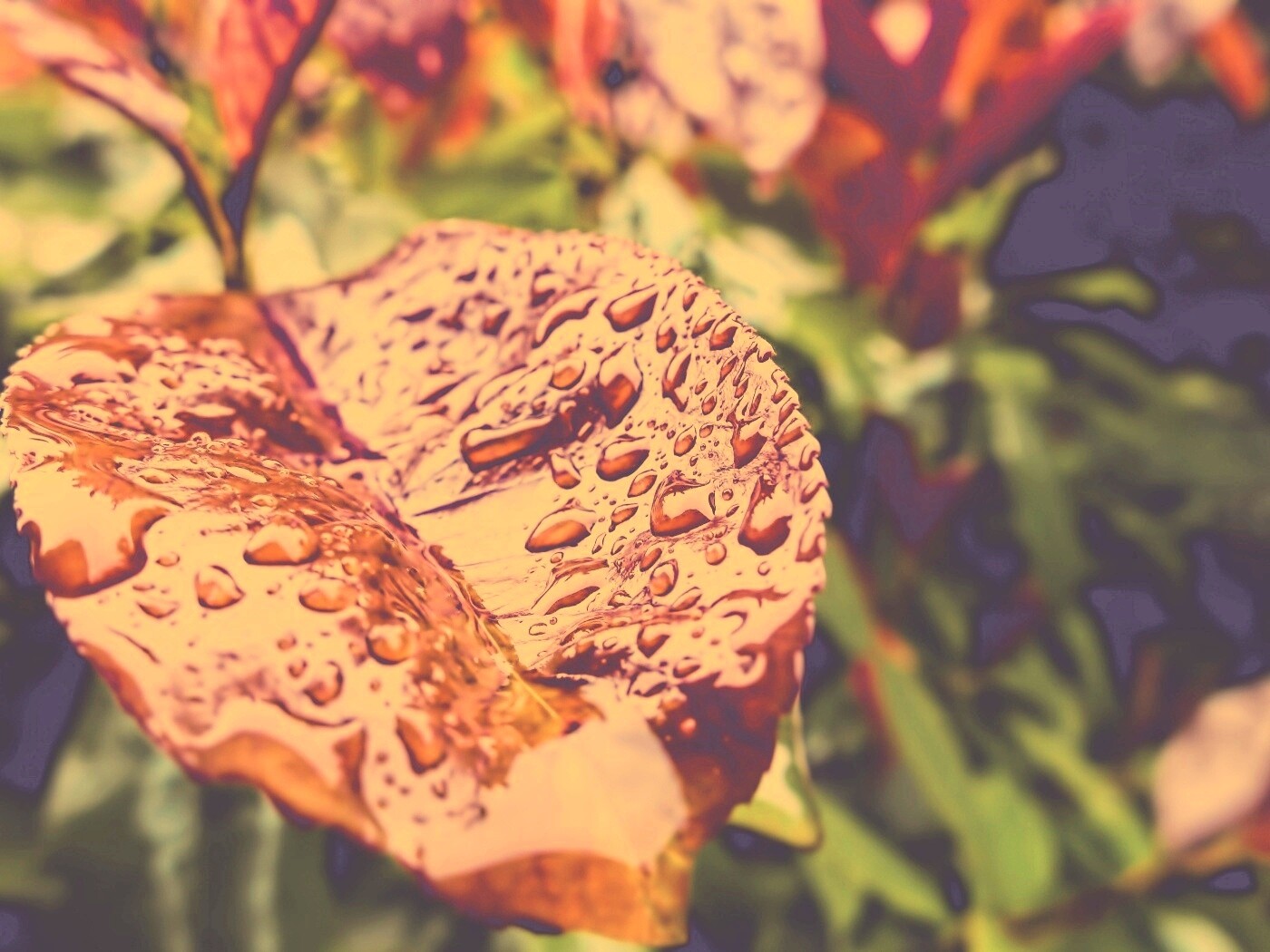 «Красный лист в каплях воды»