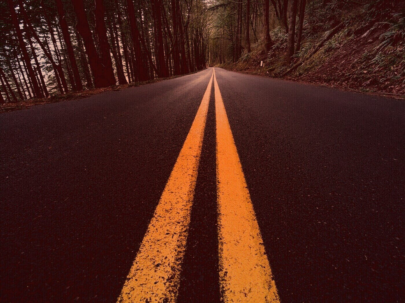 Обои для рабочего стола «Дорога в лесу» 1400х1050 с фильтром toaster (оригинал 1680х1050)