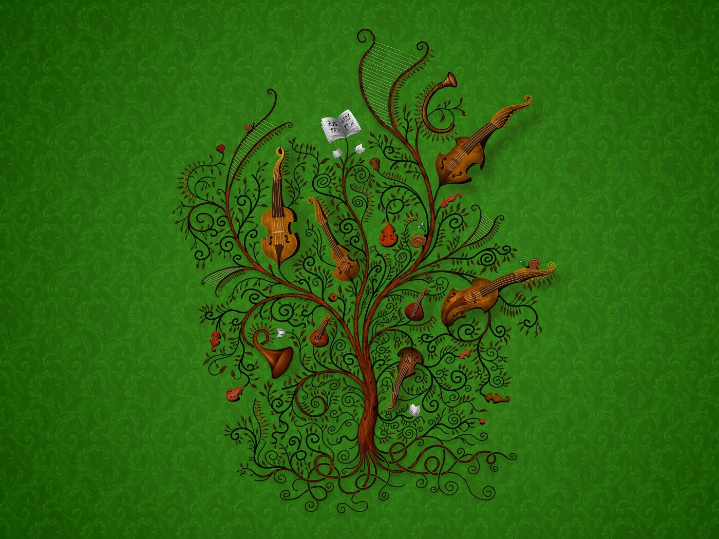 Обои для рабочего стола «Музыкальное дерево» 1400х1050 с фильтром vibrance (оригинал 2560х1600)