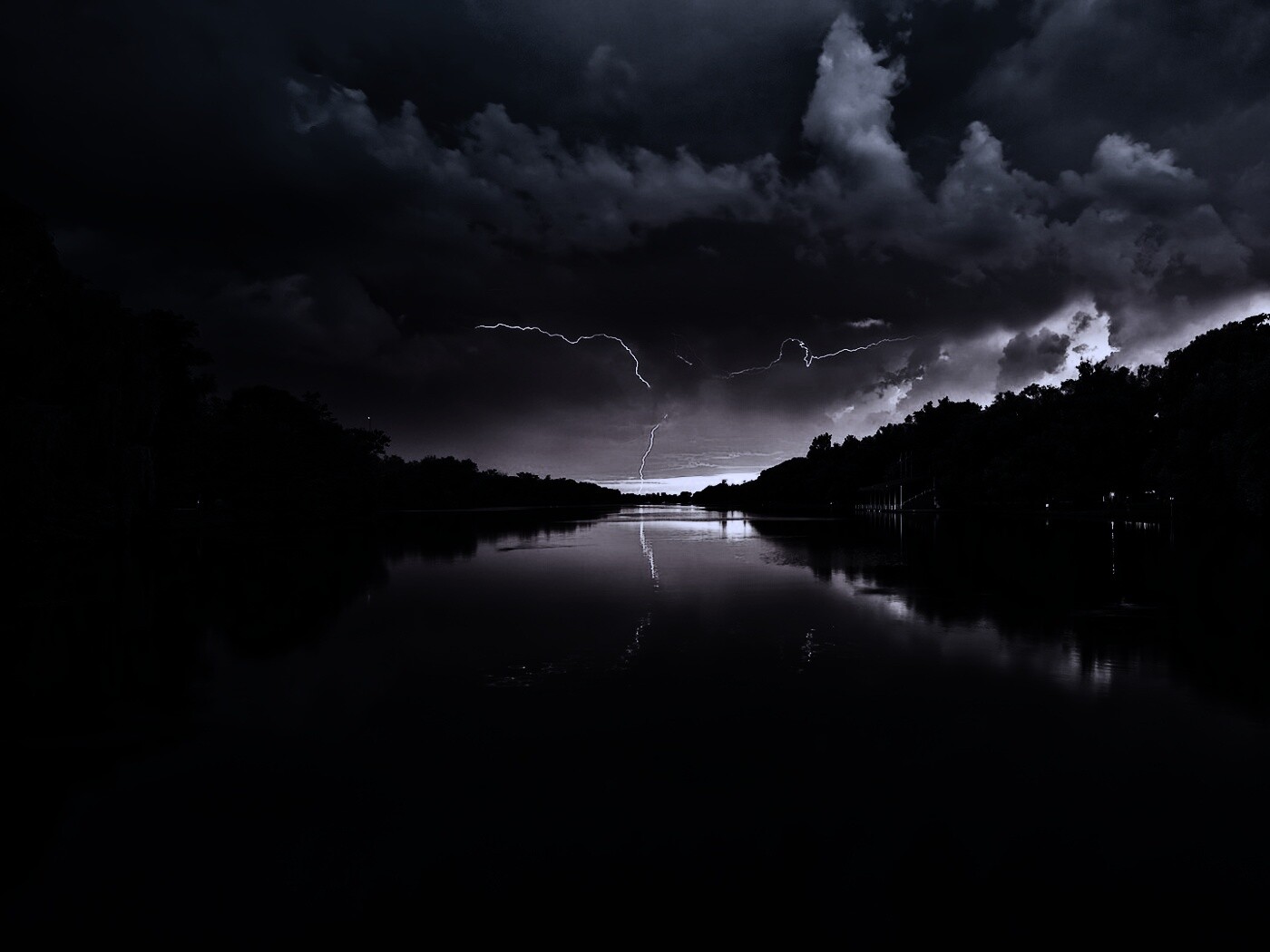 «Молнии на фоне заката, стандартные обои mac»