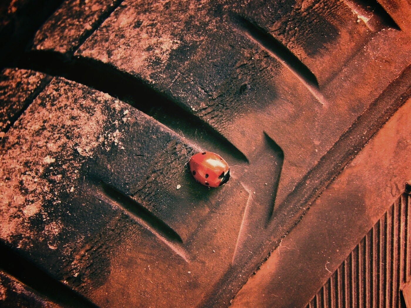 «Божья коровка на автомобильной покрышке»