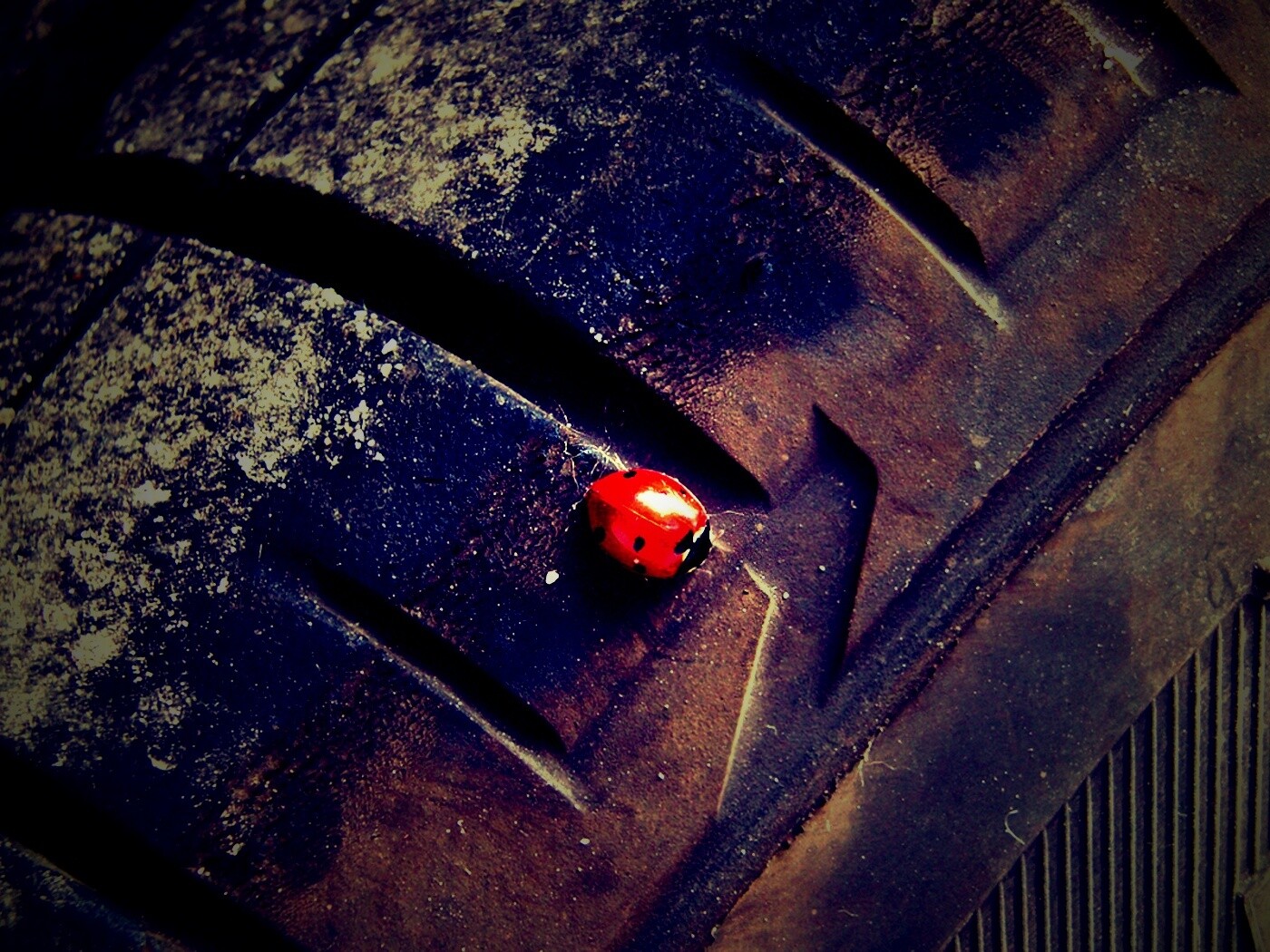 «Божья коровка на автомобильной покрышке»