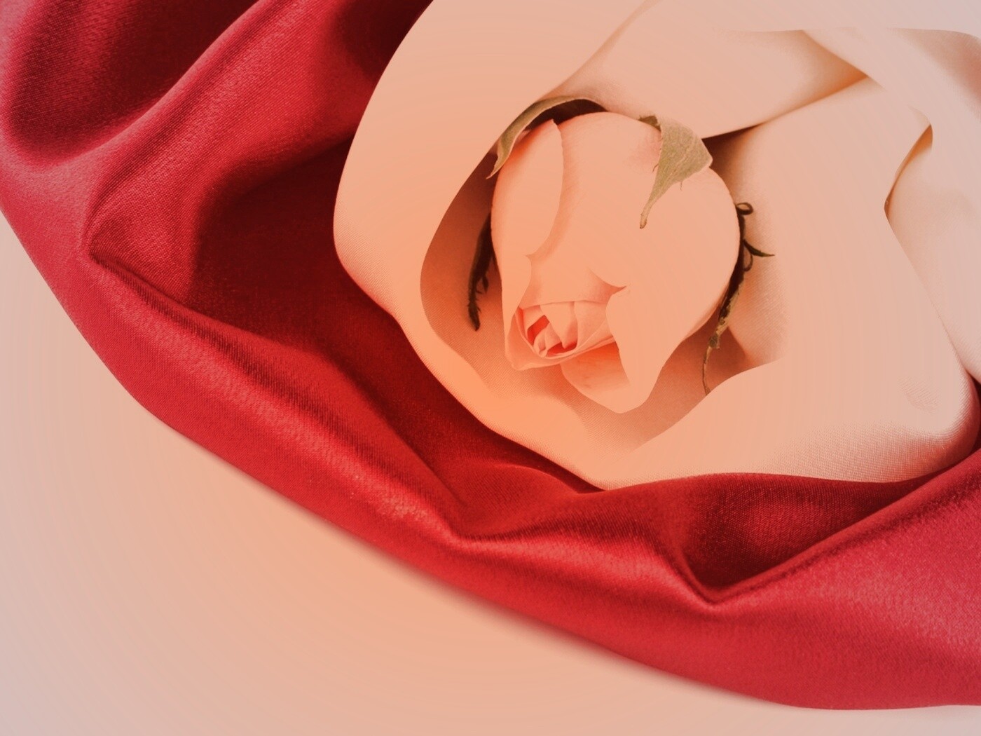 Обои для рабочего стола «Нераспустившийся цветок розы в шелке» 1400х1050 с фильтром toaster (оригинал 2560х1600)