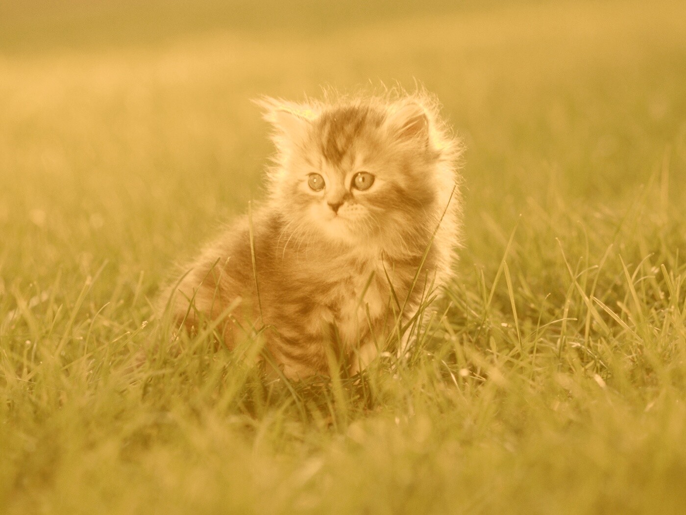 «Пушистый котенок в траве»