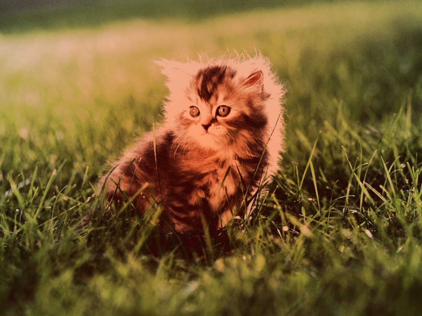 «Пушистый котенок в траве»
